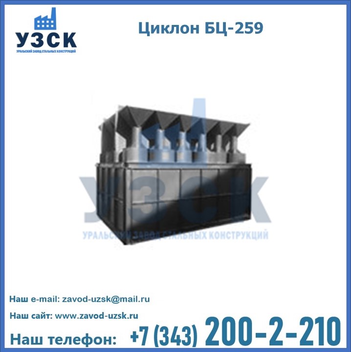 Приобрести качественное оборудование, в том числе, циклоны БЦ-259, можно в компании УЗСК в Талгаре. Мы предлагаем долговечную и надежную продукцию по приемлемой цене. Заказать и купить циклоны или другие изделия высокого качества можно через сайт Уральского Завода Стальных Конструкций, или позвонив по указанному в разделе «Контакты» телефону.