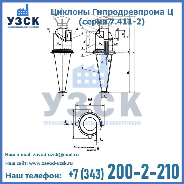 Циклоны Гипродревпрома Ц (серия 7.411-2) высокого качества можно купить в компании «УЗСК» в Талгаре. Наши специалисты предоставят всю необходимую информацию информацию и помогут с выбором модели циклона. Подробные технические характеристики, конструкцию, параметры, ассортимент и стоимость продукции можно также найти на сайте УЗСК.