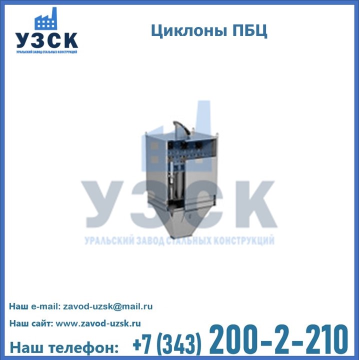 Завод «УЗСК» в Талгаре предлагает приобрести циклоны ПБЦ и прочие устройства, полностью укомплектованные и готовые к эксплуатации. Мы гарантируем соответствие оборудования всем требованиям ГОСТ и ТУ, износостойкость и высокую производительность предлагаемого оборудования. Уральский Завод Стальных Конструкций изготавливает и продает надежное, эффективное и производительное оборудование, имеющее длительную гарантию и большой эксплуатационный ресурс. Если требуется изготовить циклон нестандартных размеров, то такой вариант выполнения заказа тоже предусмотрен, так как предприятие имеет собственные производственные площади и надежных поставщиков. На все поставляемое или производимое оборудование имеются чертежи и прочая техническая документация. Заказать и купить циклоны или прочее оборудование высокого качества и по доступной цене можно через наш сайт или по указанному в разделе «Контакты» телефону.