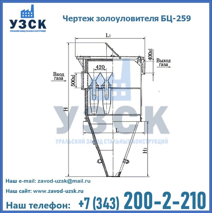 Если вы планируете купить то или иное оборудование, например, циклоны-золоуловители БЦ-259, то рекомендуем заказать данный товар на сайте УЗСК. Мы производим и реализуем продукцию высокого качества по приемлемой цене. Эксперты Уральского Завода Стальных Конструкций в Талгаре проконсультируют вас по всем вопросам, помогут сделать выбор и оформить заказ без лишних временных затрат. Мы гарантируем соответствие нашей продукции всем требованиям ГОСТ и ТУ, а также износостойкость и высокую производительность предлагаемого оборудования. Если требуется изготовить циклон нестандартных размеров, то такой вариант выполнения заказа тоже предусмотрен, так как предприятие имеет собственные производственные площади и надежных поставщиков. На все поставляемое или производимое оборудование имеются чертежи и прочая техническая документация. Заказать и купить циклоны или прочее оборудование высокого качества и по доступной цене можно через наш сайт или по указанному в разделе «Контакты» телефону.