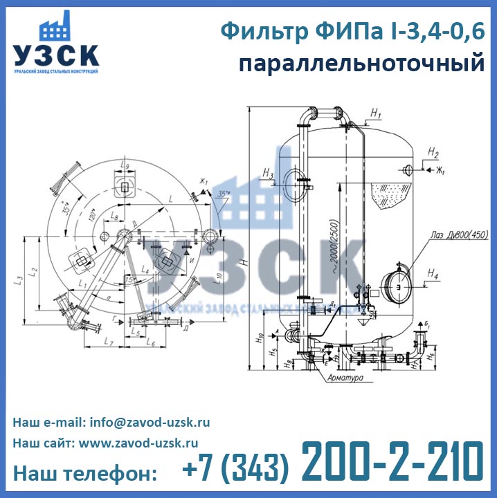Производитель фильтров ФИПа параллельно-точных завод УЗСК предлагает два варианта комплектации ФИПаI 3,4-0,6 в Талгаре: