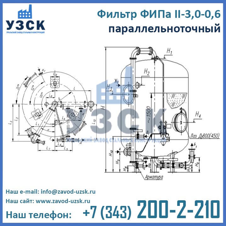 Актуальные цены на ФИПаII-3,0-0,6 в Талгаре Вы можете уточнить в отделе продаж Уральского Завода Стальных Конструкций (производитель ионитных фильтров), для этого заполните форму заказа внизу страницы.
